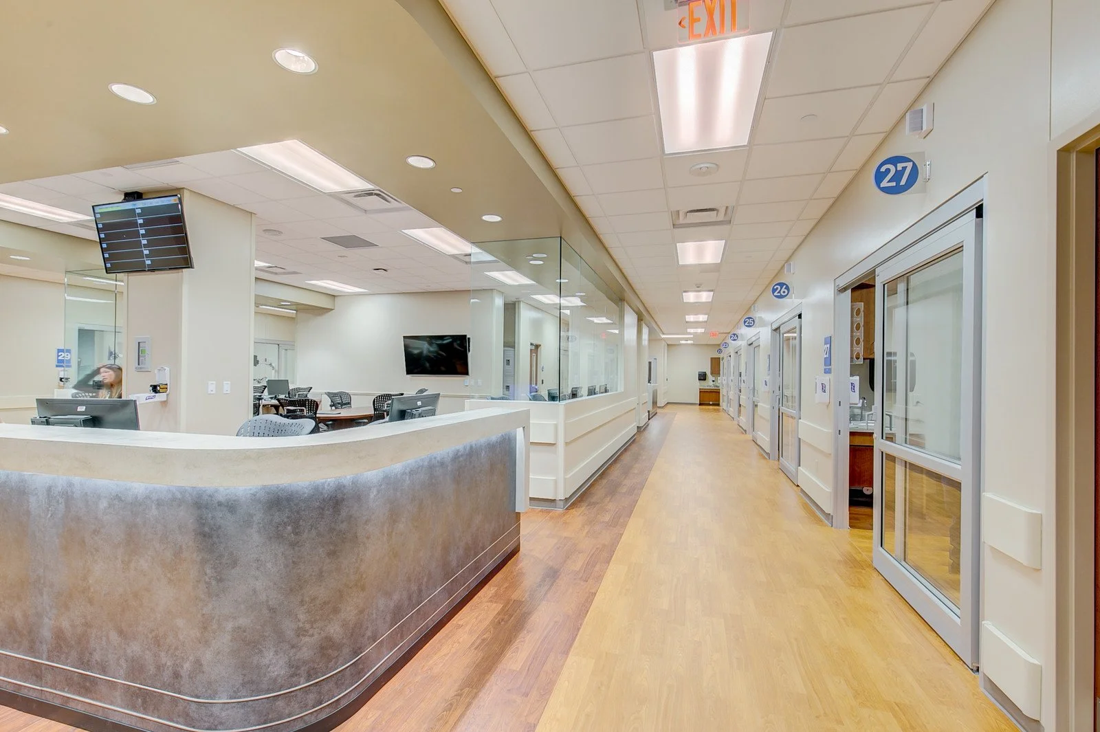 This project was a shell finishout of an existing space within JPS pavillion. The work consisted of creating new triage areas, patient exam/intake spaces, multiple nurses stations, and patient waiting areas.